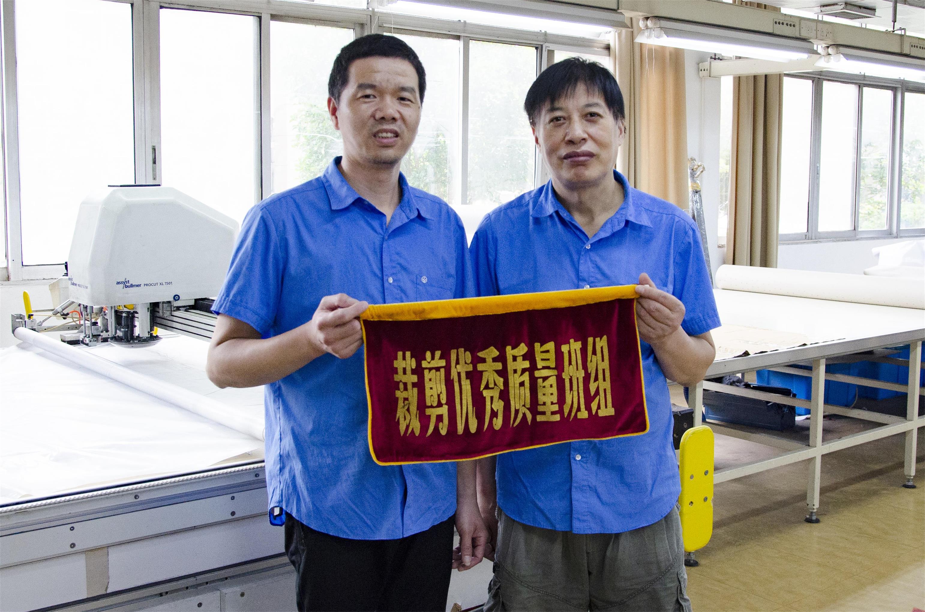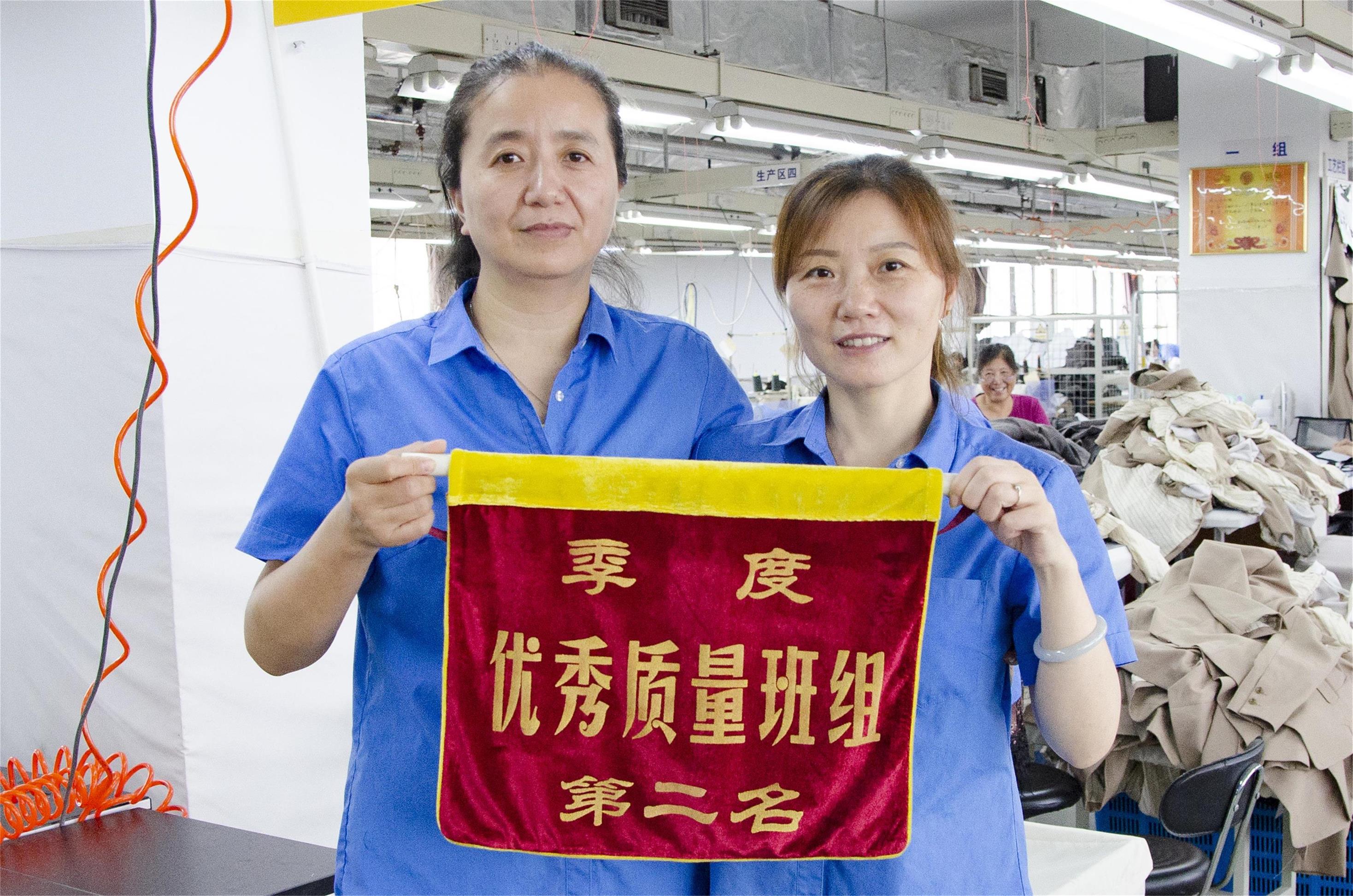 在公司2020年度二季度质量竞赛中,袁金保、王峰小组荣获裁剪车间质量奖;一车间三组、三车间四组、二车间三组分别荣获缝纫车间质量奖前三名。
