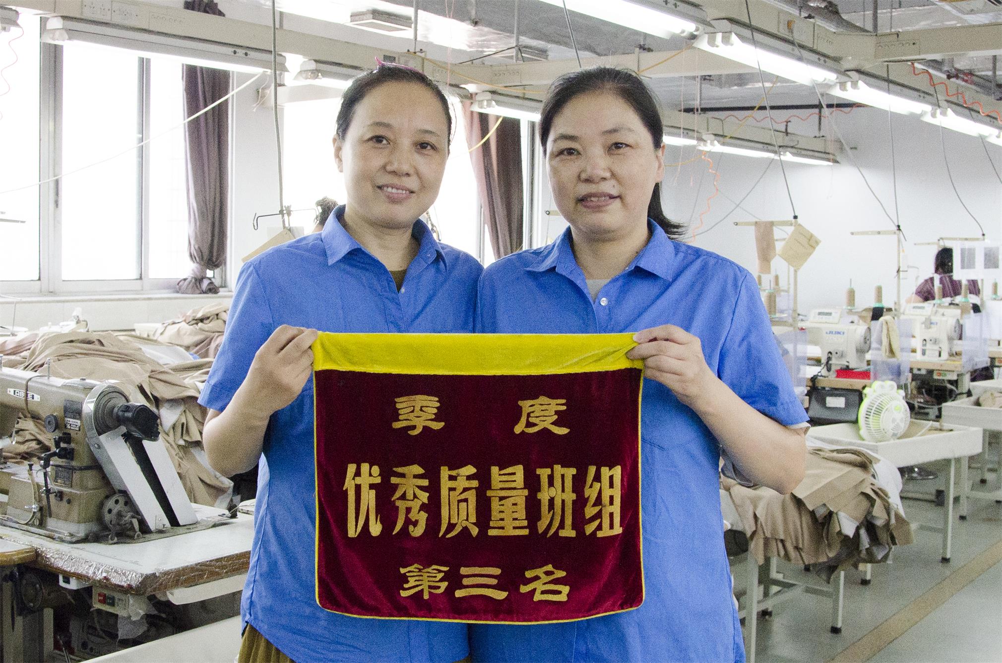 在公司2021年度二季度质量竞赛中,张玲芳、魏建国小组荣获裁剪车间质量奖;二车间四组、二车间一组、三车间三组分别荣获缝纫车间质量奖前三名。