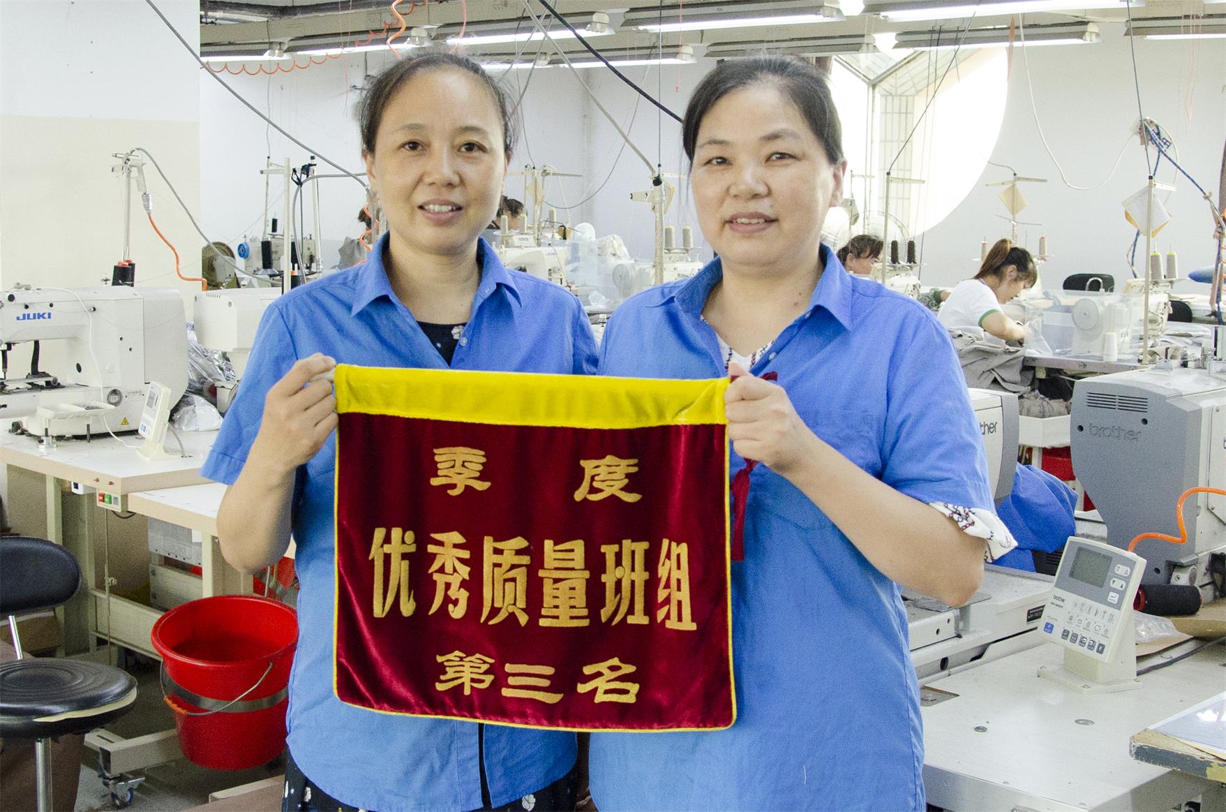 在公司2022年度二季度质量竞赛中,胡建华、王义小组荣获裁剪车间质量奖;二车间1组、二车间4组、三车间3组分别荣获缝纫车间质量奖前三名。