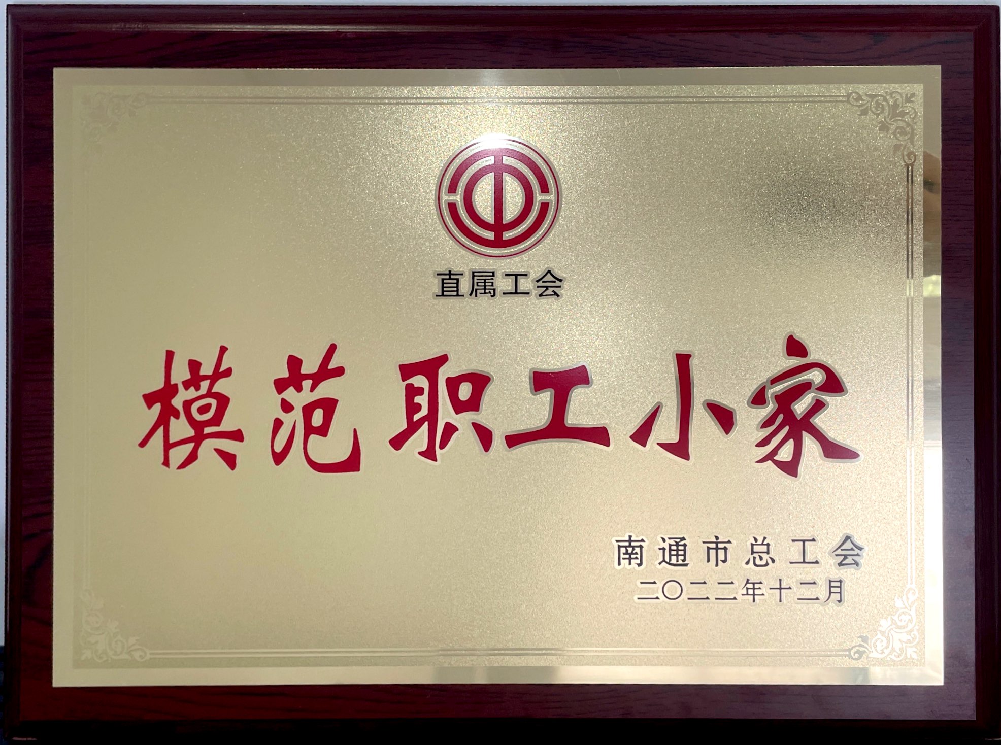 2023年4月14日,在“南通市直属工会产改工作推进会”上,”江苏业勤服饰有限公司工会委员会大包装分工会被授予“2022年度直属工会模范职工小家”荣誉称号。
