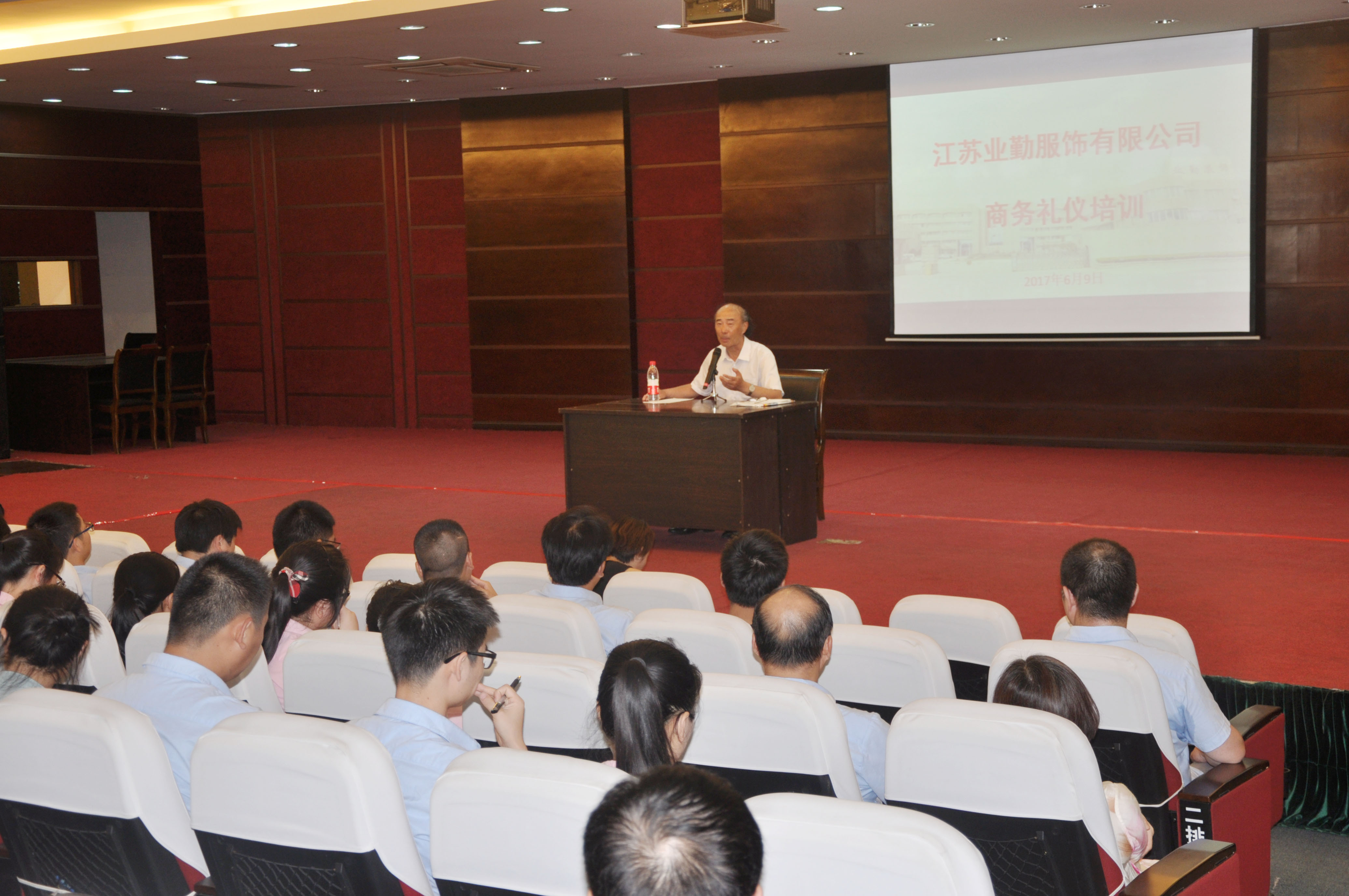 随着企业的不断发展,业勤服饰的对外交流更加密集。为进一步提升员工的对外交流水平和企业形象,6月9日,公司邀请了南通旅游中专高级教师、原南通“文明礼仪”宣讲团领队徐培建老师,在公司会议中心主讲“商务礼仪培训”。