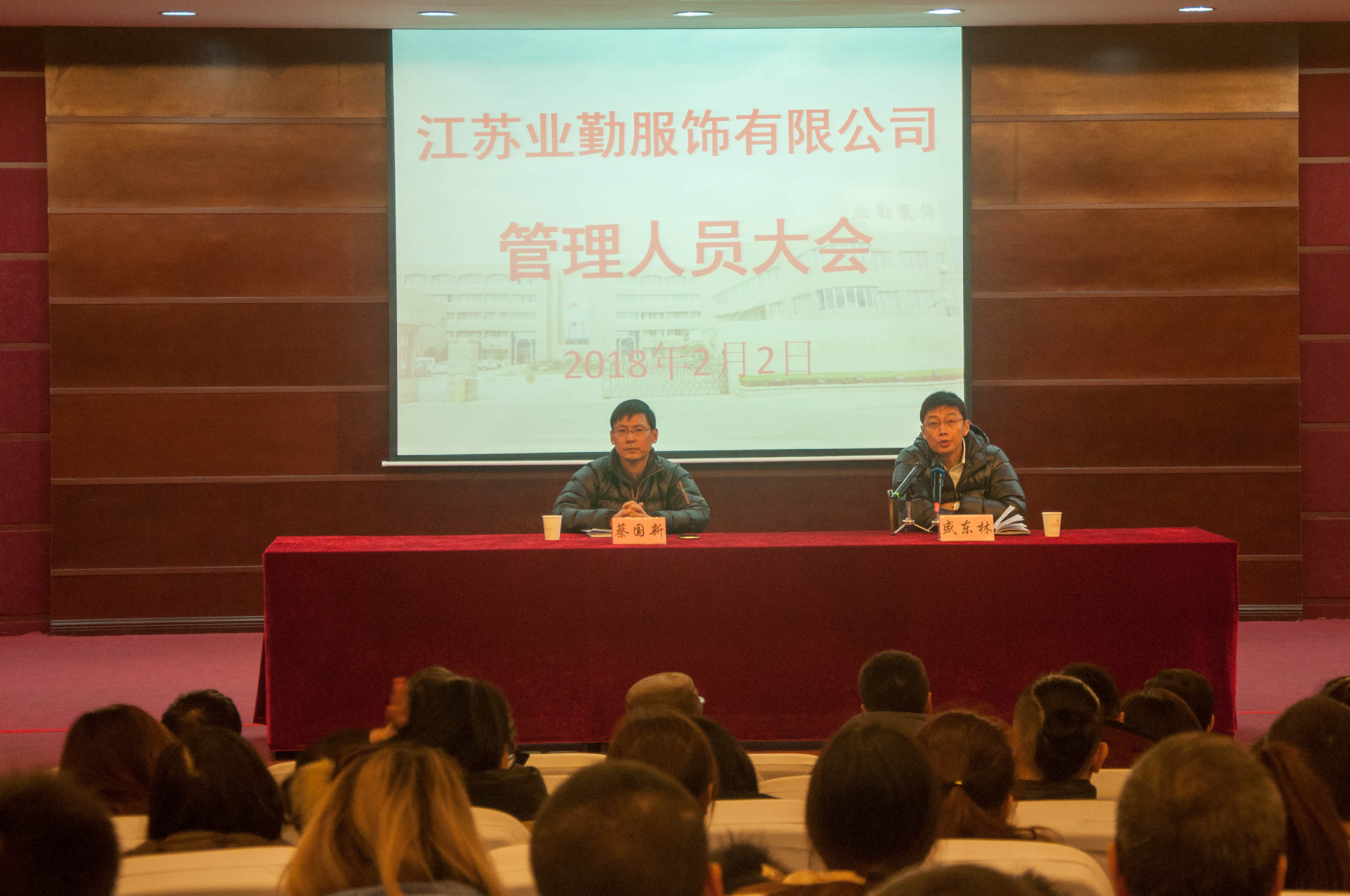 2月2日,业勤服饰召开了全体管理人员大会,公司200余名管理人员齐聚公司会议中心,认真聆听了公司总经理盛东林的重要讲话。大会由公司党委书记、工会主席蔡国新主持。
